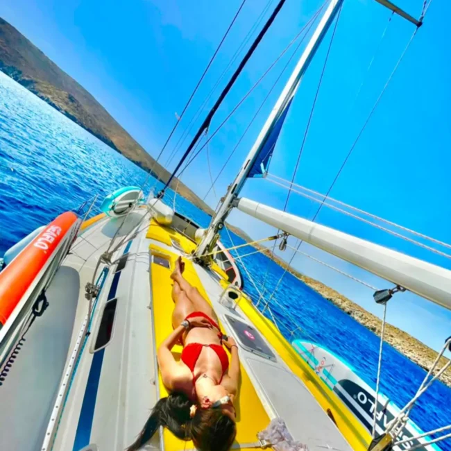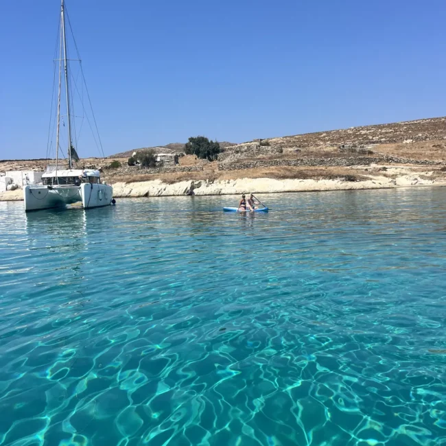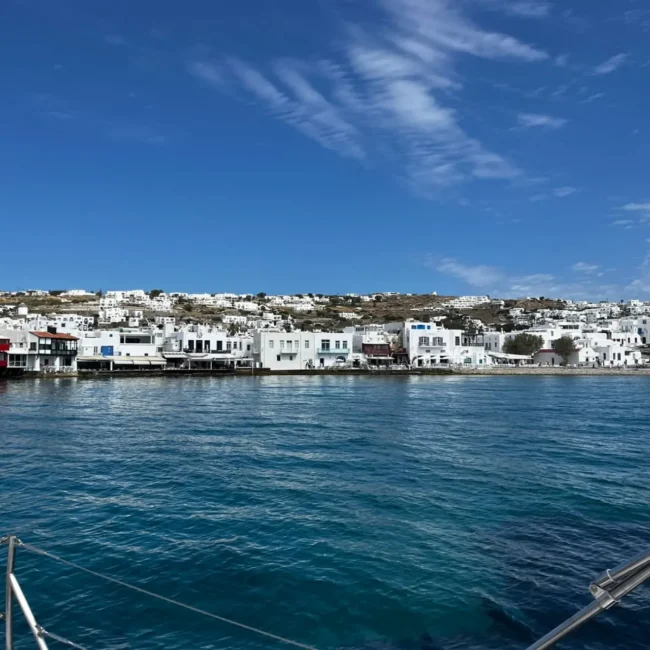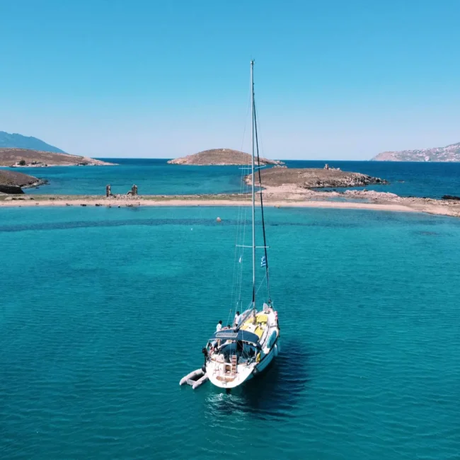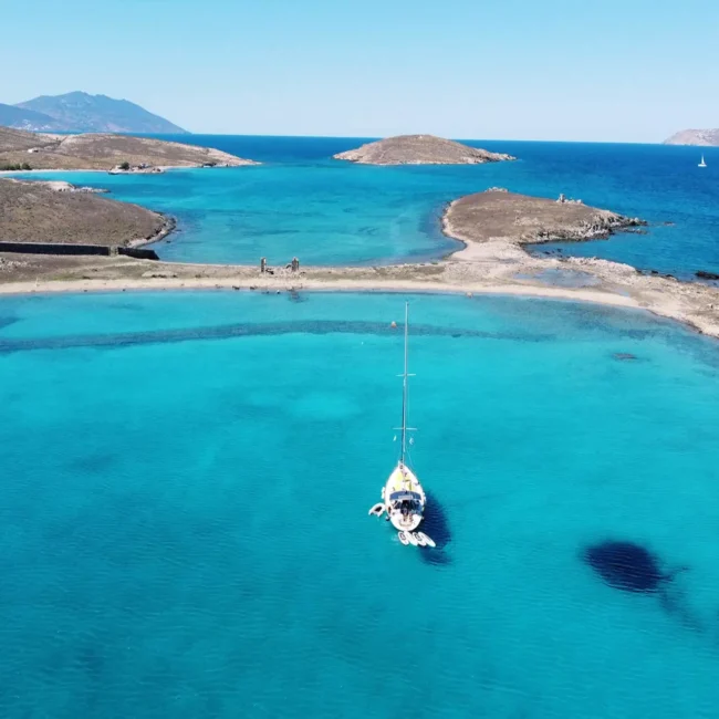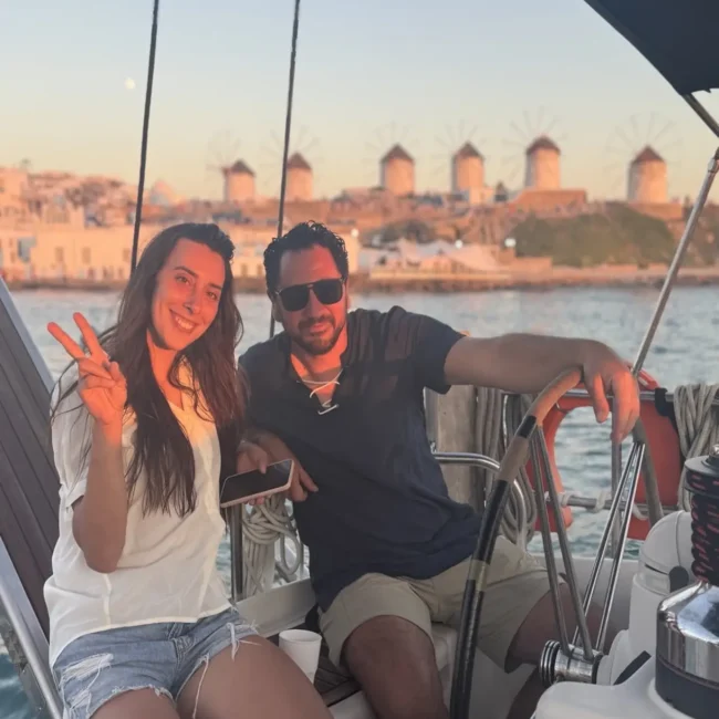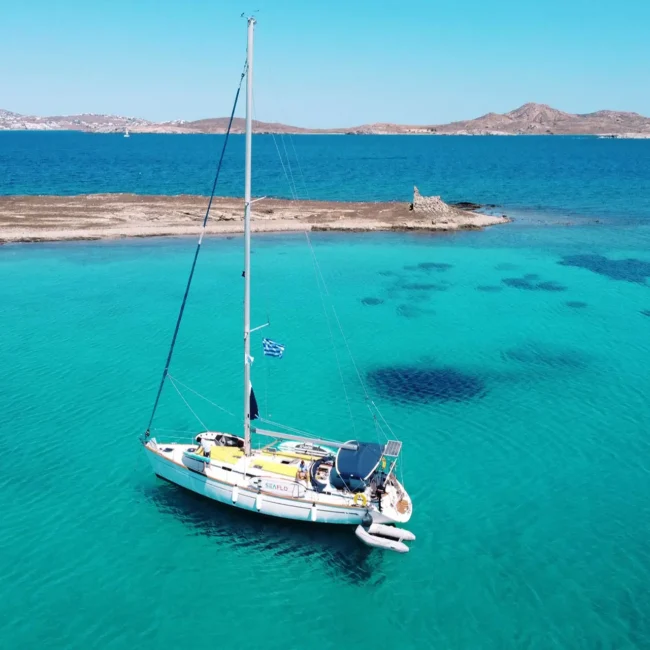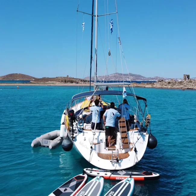 Experience Mykonos from the sea with Doukas Sailing. Small groups, hidden beaches, and unforgettable moments await.